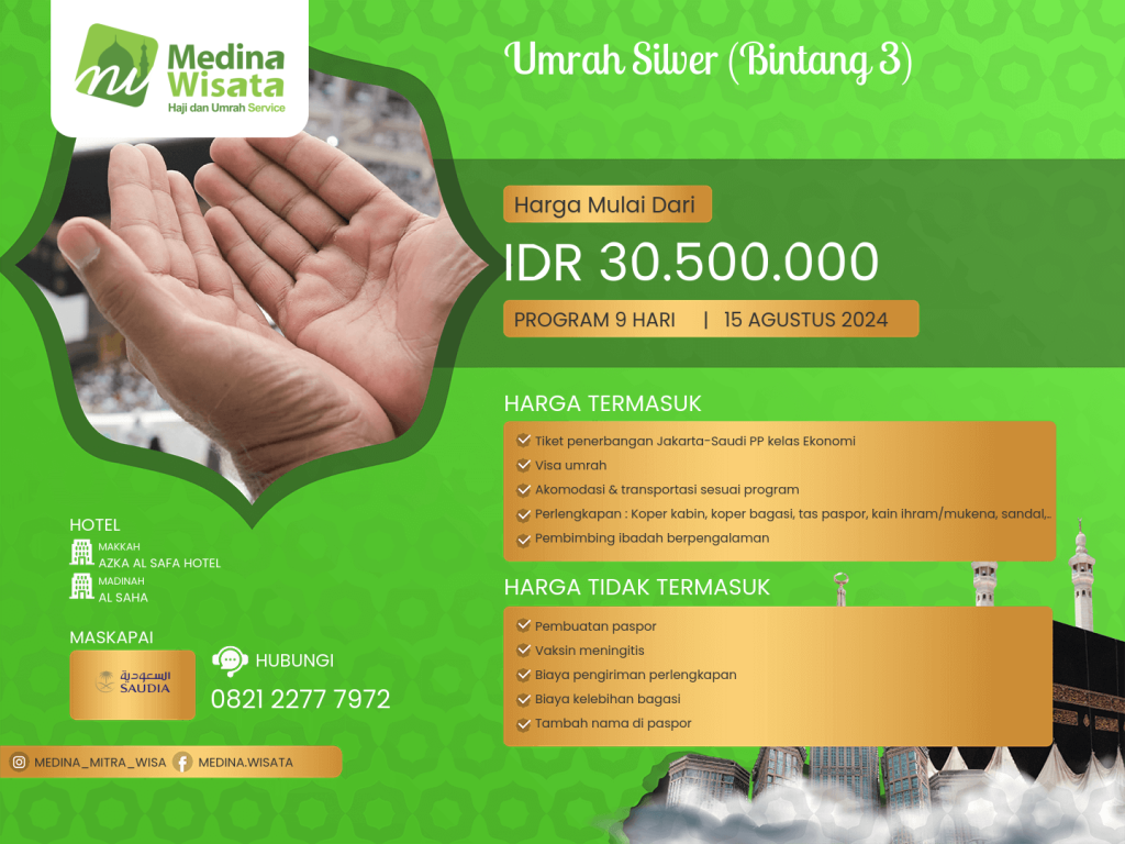 - 30 hari sebelum tanggal keberangkatan, dikenakan biaya pembatalan sebesar 25% dari harga paket.